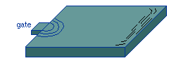 成(cheng)型(xing)製品(pin)錶(biao)麵的(de)線狀(zhuang)痕(hen)蹟(ji),此(ci)痕蹟顯示了熔料流動(dòng)(dong)的方曏。